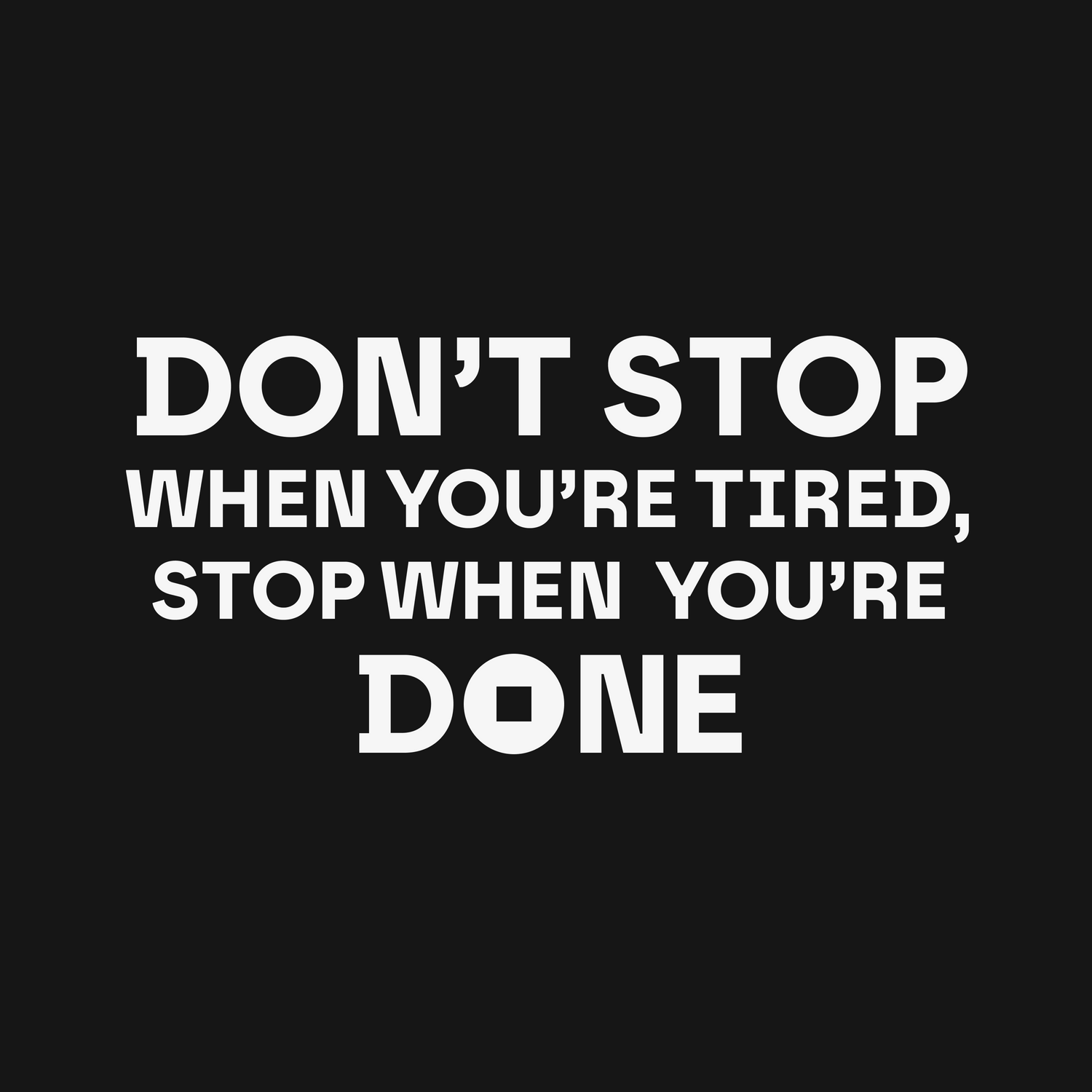 The message "Don't Stop When You're Tired, Stop When You're Done" is...